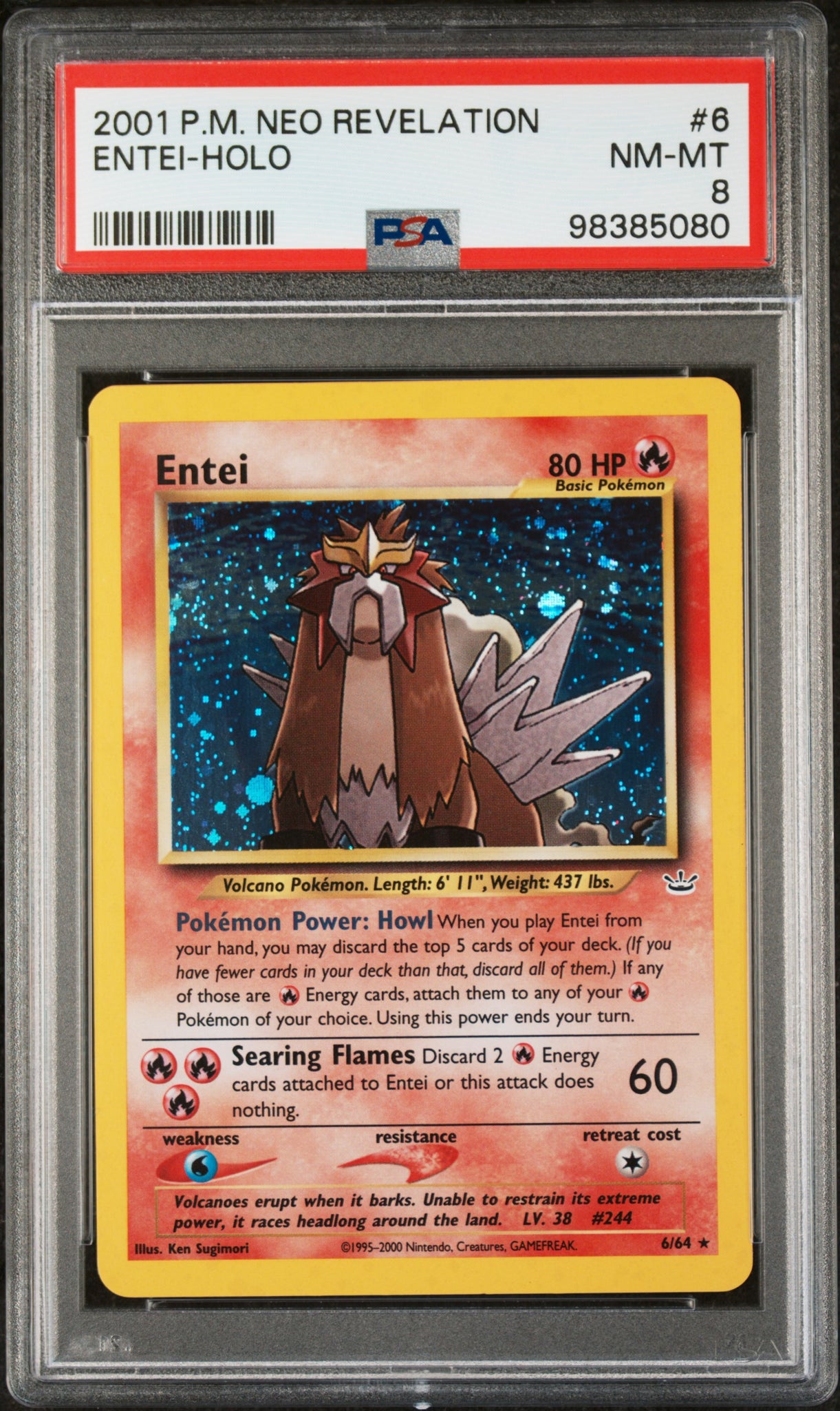 Entei-Holo #6 2001 Pokemon Neo Revelation PSA 8