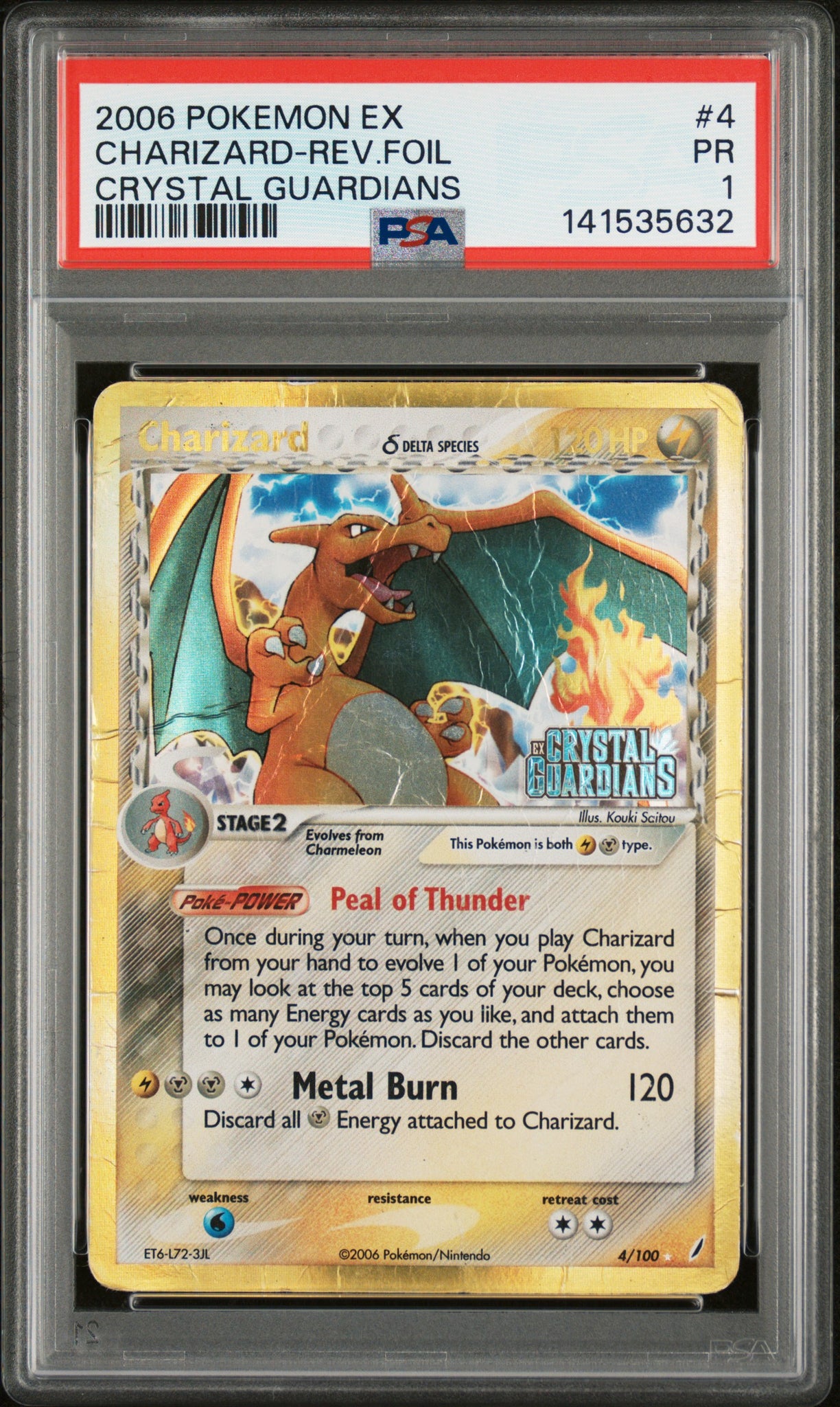 Charizard-Rev.Foil #4 2006 Pokemon Ex Crystal Guardians PSA 1